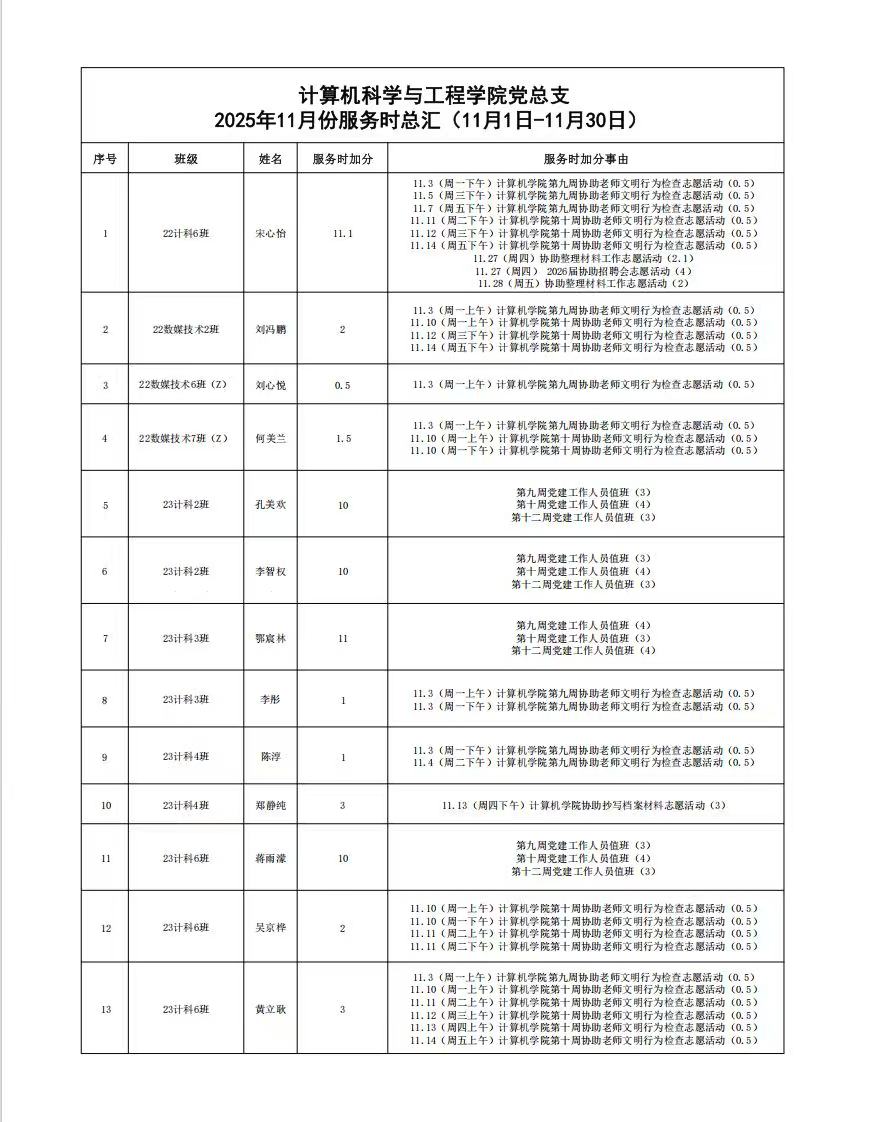 在听取培养联系人、党员和群众意见的基础上,经支委会研究决定,每月对计算机科学与工程学院各个发展阶段的同志进行服务时公示,具体情况公示如下。