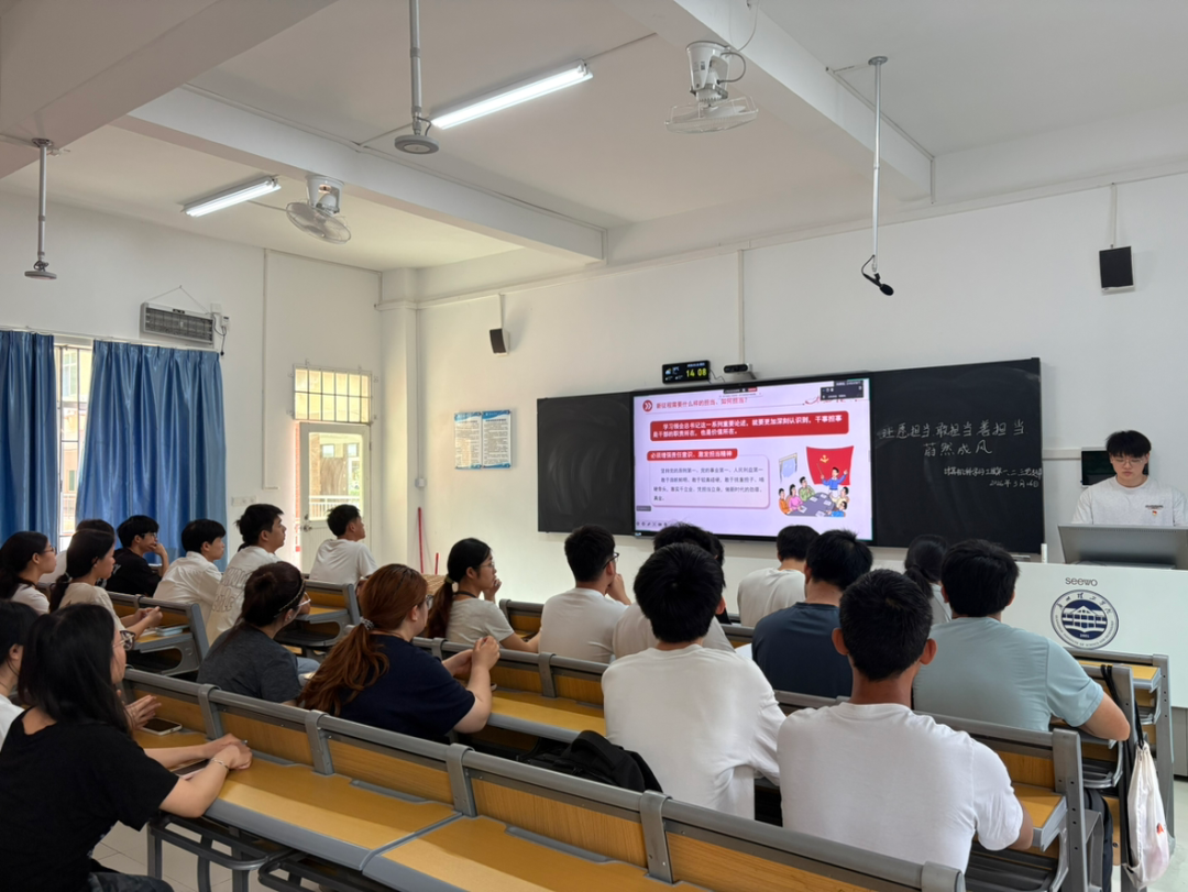 3月26日,计算机科学与工程学院学生第一、二、三党支部于6-102教室开展以 “让愿担当、敢担当、善担当蔚然成风”为主题的专题学习会。本次会议由学生第二党支部副书记鄂宸林主持,各支部学生党员参与学习。