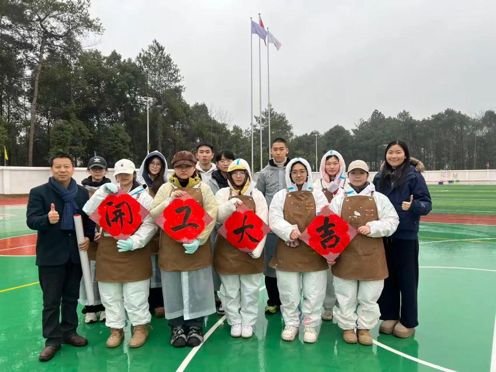 春风拂校园,画笔绘新篇。2026年1月27日至2月2日,开云kaiyun体育官方网站10名学生与指导老师周杨彦老师来到湖南省邵阳市洞口中学,以操场墙面为画布,用色彩与创意打造校园文化新地标,一场以艺术赋能校园、以青春点亮成长的墙绘创作正式启幕。