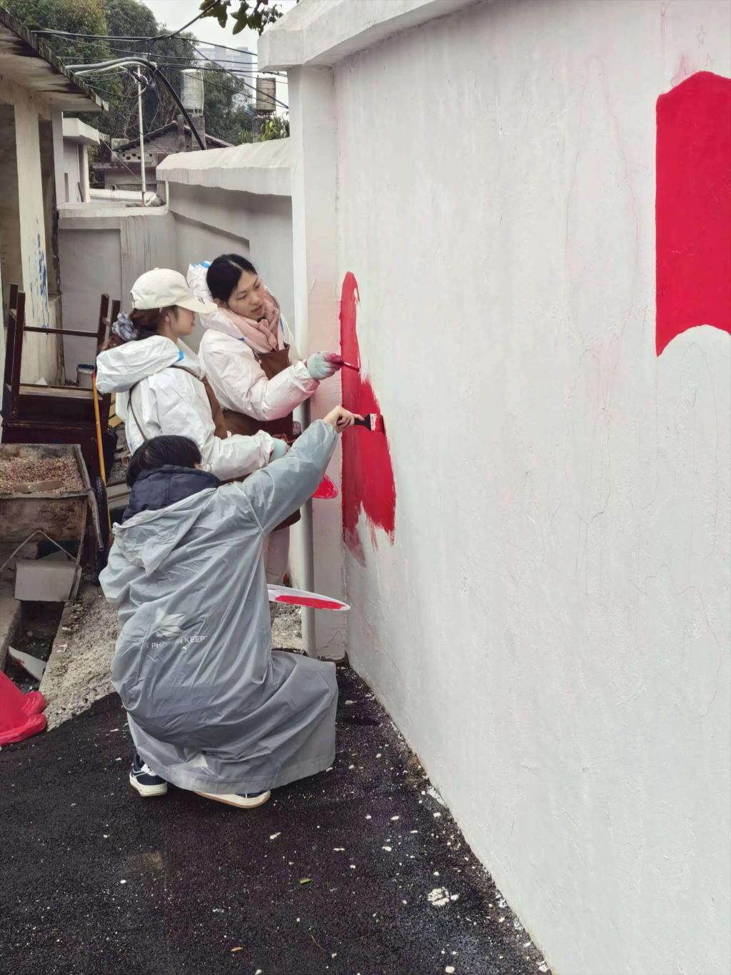 1月29日,创作将进入上色阶段。团队将以饱满色彩填充画面,让每一笔都传递青春力量,每一色都彰显育人内涵,让单调墙面焕发生机与活力。