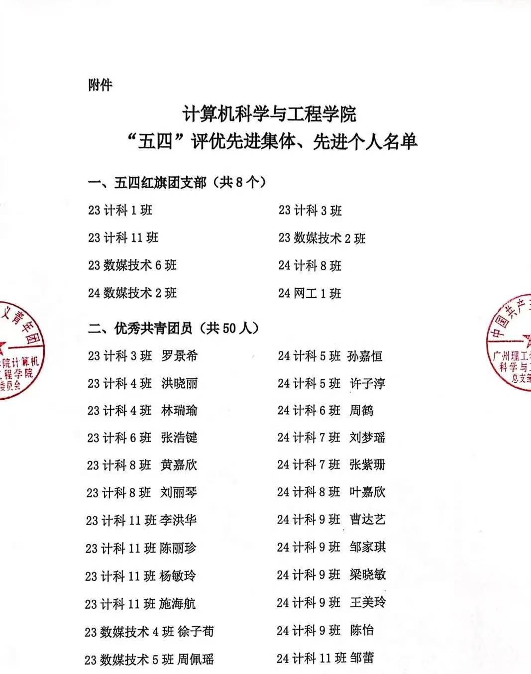 根据《关于推荐评选2025-2026年度五四红旗团支部、五四红旗团总支、优秀共青团员、优秀共青团干部的预通知》要求,本着公平、公开、公正的原则,经个人申请、团支部推荐、团总支审查,现将拟推荐候选人予以公示(名单见附件)。