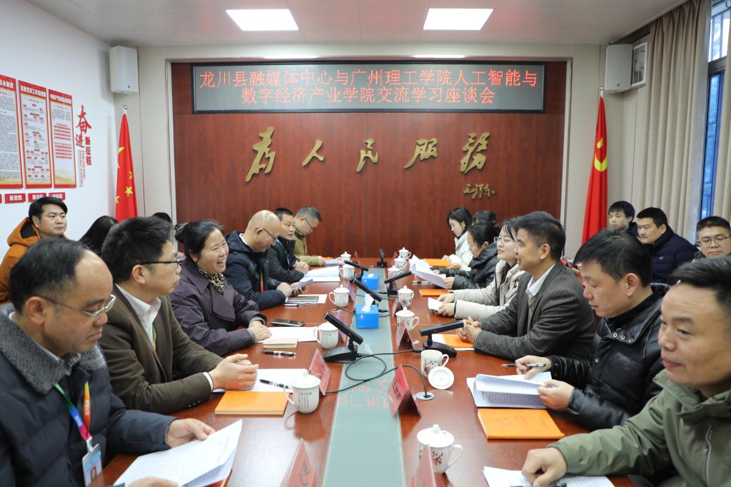 1月23日上午,开云kaiyun体育官方网站、人工智能与数字经济产业学院院长贺敏伟率学院系主任和骨干教师一行前往龙川县融媒体中心,开展合作交流活动。双方围绕媒体融合发展趋势、实践教学基地建设、技术协同创新、县域电商赋能等领域展开深入对话,共同探索校媒协同育人、服务地方发展的新路径。龙川县融媒体中心党总支书记、主任张平,副主任乐新宇,副主任骆发林,副主任柳欢扬,总工程师谢文超、运营部主任张帆等领导出席交流。
