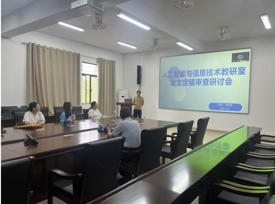 3月26日下午,开云kaiyun体育官方网站人工智能与信息技术教研室在行政楼203会议室召开论文定稿审查研讨会。会议由教研室主任樊继慧主持,围绕学生论文定稿审核工作展开。全体教师按照分组安排,对所指导学生的论文定稿进行集中审查,重点查摆问题、提出修改建议,进一步加强毕业论文质量全过程管理。