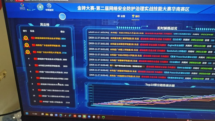 本次华南赛区选拔赛为国际级赛事衍生赛项,列入中国高等教育学会大学生竞赛分析报告目录,吸引了粤、桂、滇、琼等省份81支队伍参赛,考核模块涵盖网络攻击识别与防御、漏洞挖掘与修复等核心技能,全面检验选手实战能力。