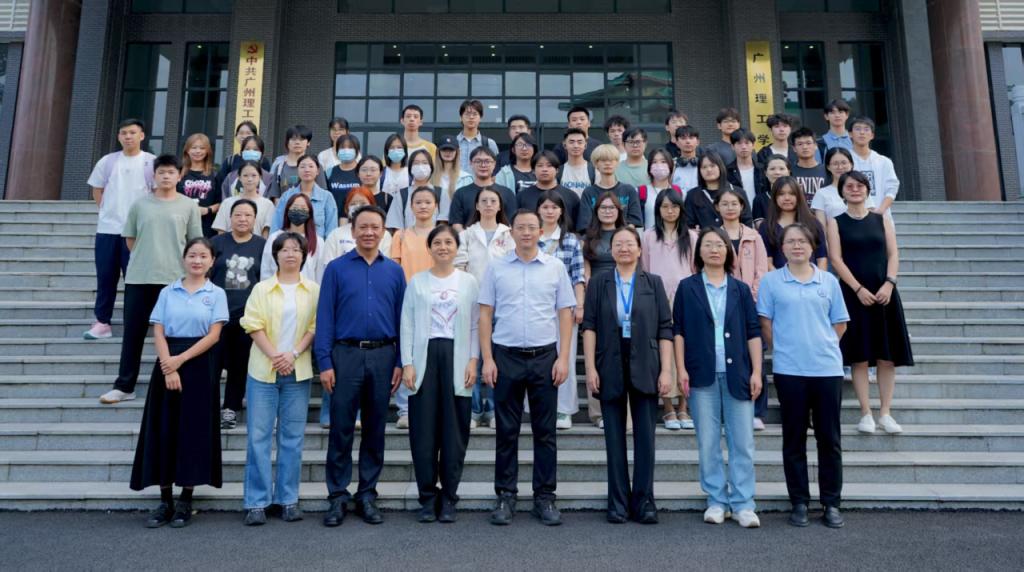 在广州理工学院师生代表的陪同下,访问团先后参观了位于第二教学楼8楼和10楼的产教融合创新育人基地,实地观摩实践教学环境及校企合作项目成果。随后,师生们走访了教学楼、图书馆、综合楼等主要教学与行政场所,并在行政楼前合影,记录两校交流的重要时刻。