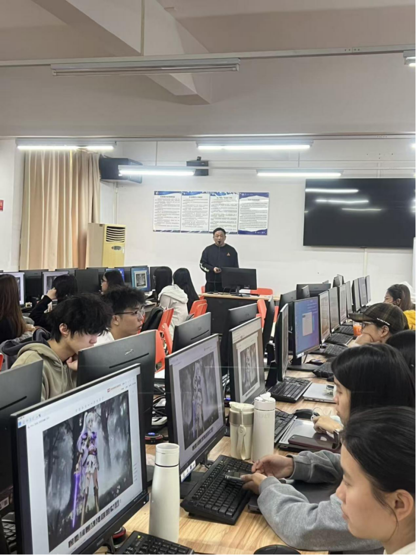 11月30日,广州灵创互娱网络科技有限公司CEO麦伟键、项目组王永超老师、技术部杨爱老师、校企合作张晓阳老师一行来到广州理工学院,与AI短剧实训营二期的39名学员开展线下项目见面会。本次会议旨在总结前期培训成果,同步下一阶段实训安排,并为即将开展的企业项目实践做好全面准备。