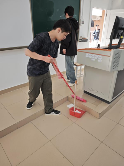 活动前期,学院提前部署、合理分工,明确报名学生负责区域,准备好扫帚、拖把、抹布等清洁工具,确保打扫工作有序高效推进。下午2时许,参与活动的学生迅速集结,并投入到卫生打扫工作中。