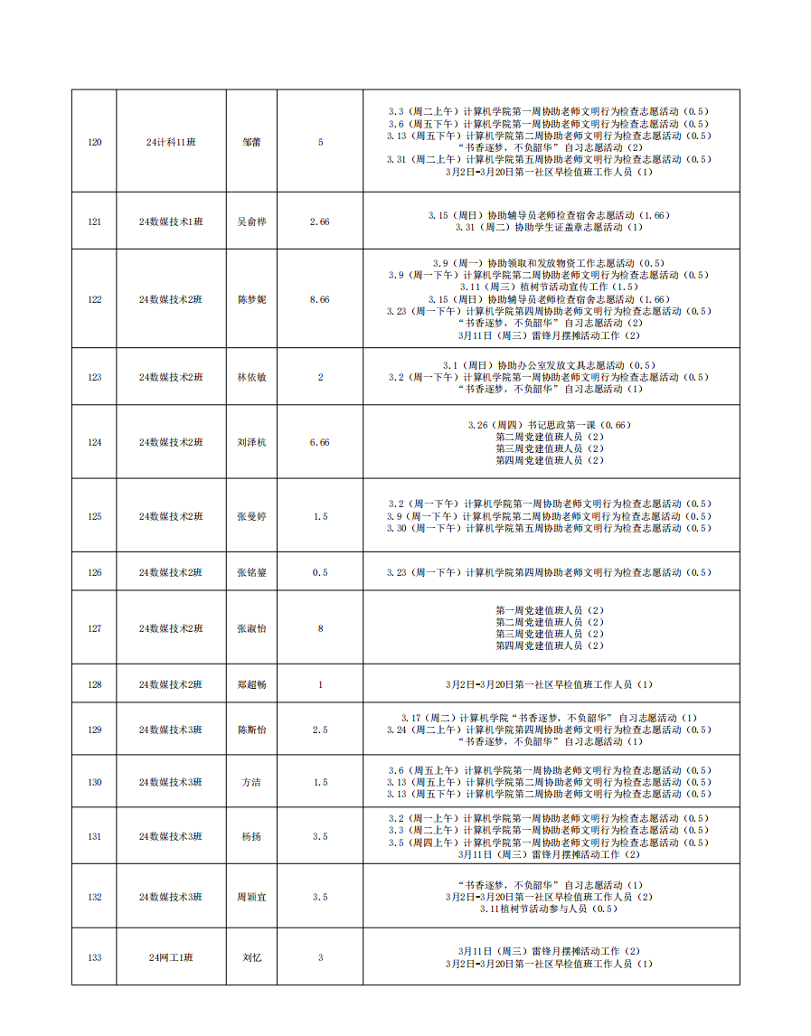 2026年3月份服务时总汇公示名单