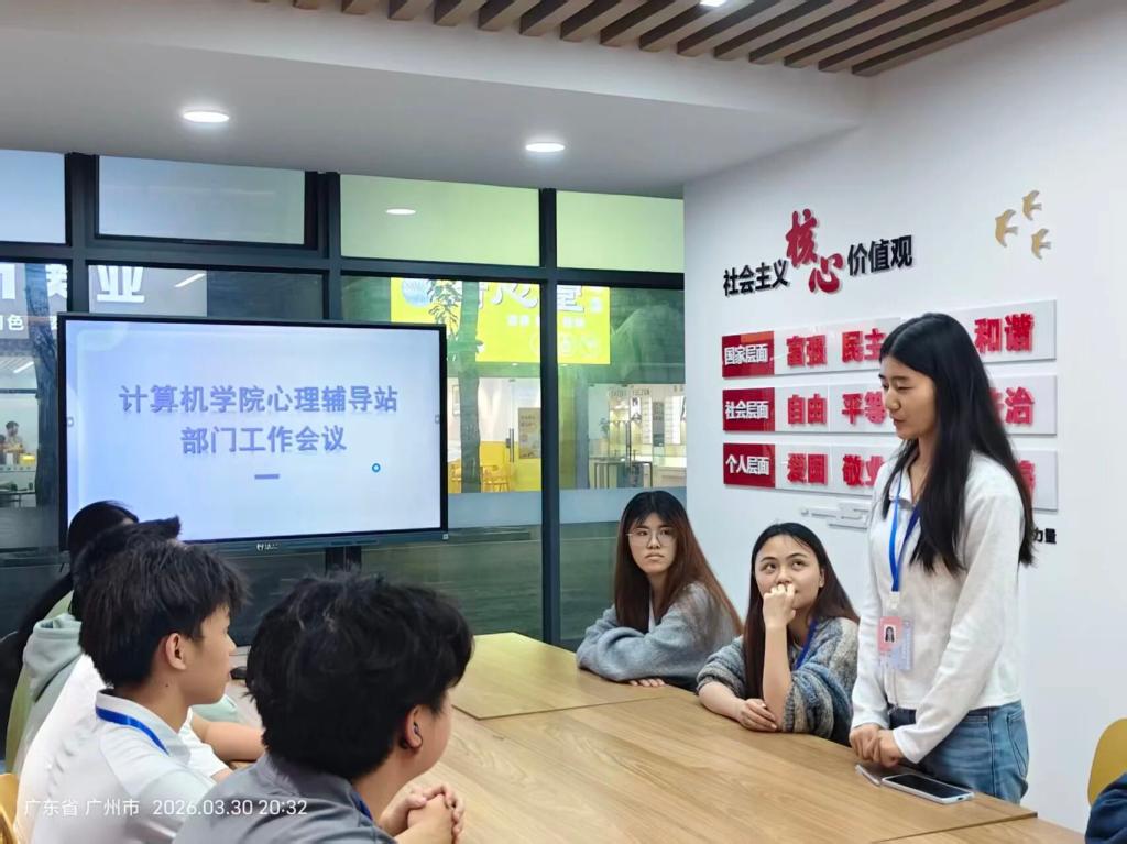 2026年3月30日,计算机科学与工程学院心理辅导站于学生第一社区活动室顺利召开了新学期部门例会。会议由心理辅导站学生负责人余汇主持,结合自身工作经验与专业积累,对新学期部门工作进行了全面部署与深入指导。心理辅导站的全体成员均积极参与了此次会议,在会议过程中,大家全神贯注,认真聆听干部的讲解,积极思考并做好相关记录。
