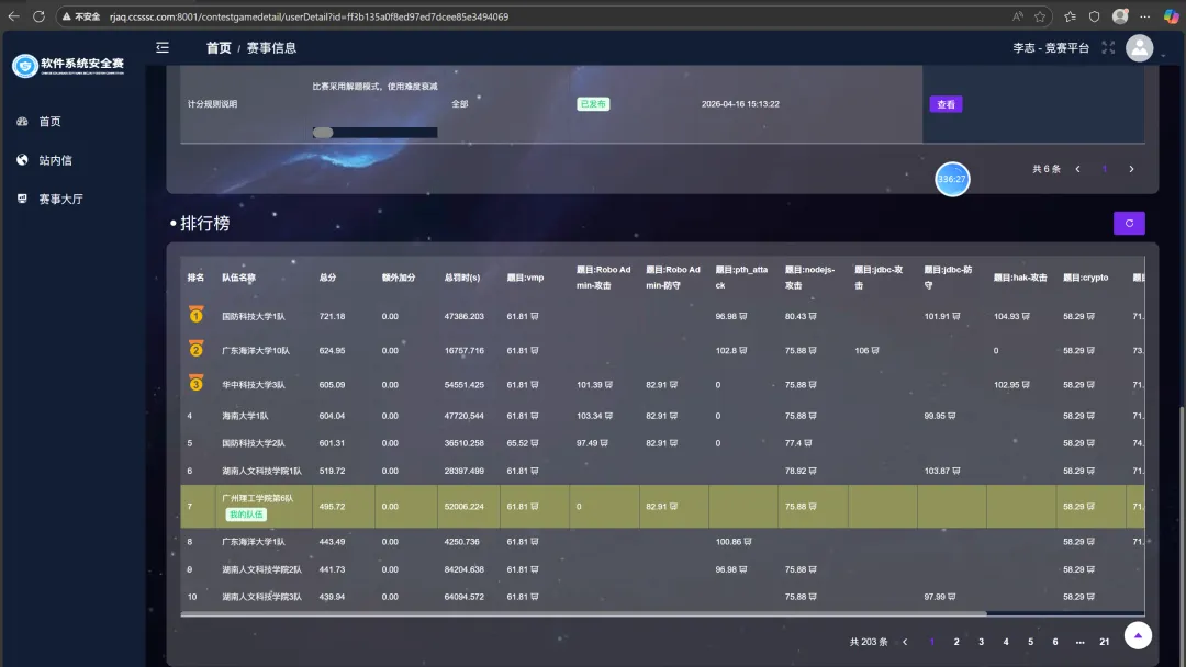 赛场之上,竞争紧张激烈、对抗白热化。开云kaiyun体育官方网站参赛队伍沉着冷静应战、分工精准协作:面对实时攻防的高压环境,队员们精准研判漏洞隐患、快速构建防御体系、灵活调整攻防策略,以严谨的钻研态度、过硬的实战能力和永不言弃的协作精神,从容应对每一轮挑战。他们的出色表现,不仅赢得了现场评委与各参赛高校的高度认可,更充分展现了广州理工学院学子扎实的专业素养与昂扬向上的科创风貌。