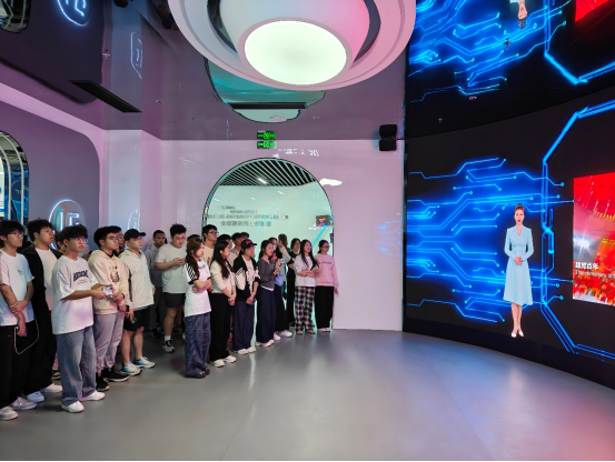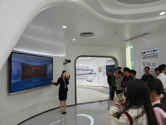 12日上午,师生团队抵达高新兴科技集团股份有限公司总部,在企业工作人员引导下参观核心展厅。通过图文展板、多媒体演示及实战应用案例,系统掌握企业在物联网、智慧城市、公共安全、车联网等领域的技术布局与产业落地成果,清晰认知前沿技术与实体经济的融合逻辑。
