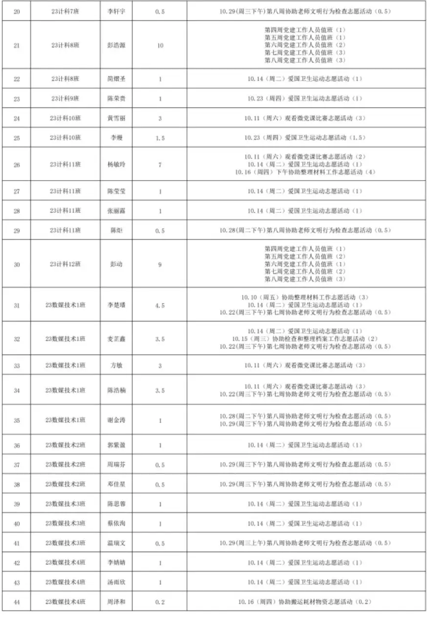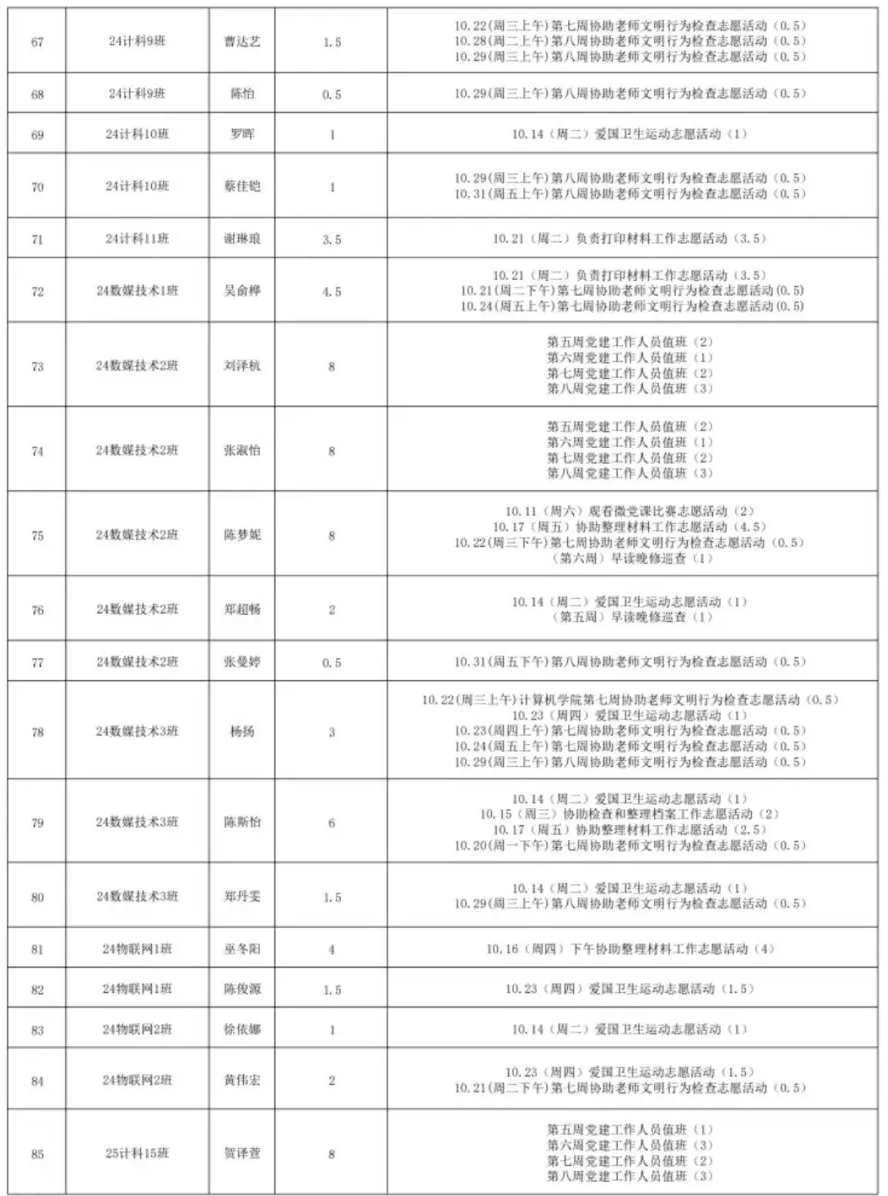 2025年10月份服务时总汇公示名单