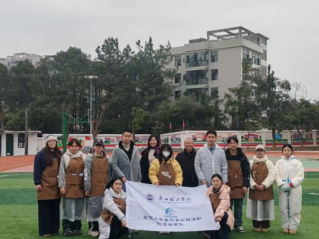 春风拂校园,画笔绘新篇。2026年1月27日至2月2日,开云kaiyun体育官方网站10名学生与指导老师周杨彦老师来到湖南省邵阳市洞口中学,以操场墙面为画布,用色彩与创意打造校园文化新地标,一场以艺术赋能校园、以青春点亮成长的墙绘创作正式启幕。