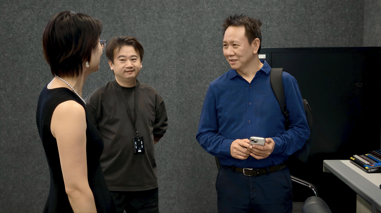 此后,访问团前往信息楼,重点参观了一楼和六楼的数字媒体技术专业实验室。实验室负责人郑哲孚老师详细讲解了实验设备配置、课程实训安排以及学生创新作品,使来访师生深入了解了专业实践教学的特色与成效。