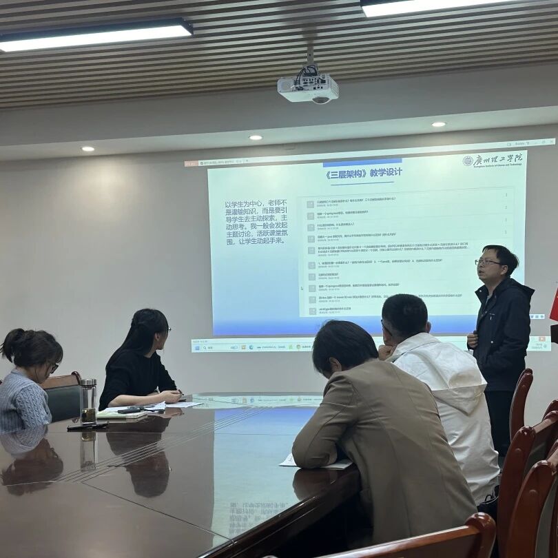 针对教学改革与创新,赵玉刚在总结发言中提出具体要求。他指出,教师需提升教学熟练度,教案设计应精细化到每个环节的时间分配;要重视课堂前15分钟的黄金时间,积极将AI技术融入教学过程,通过精心设计的教学案例和课程思政元素,打造高质高效课堂。此外,游棉州老师以《高级架构技术》课程为例,分享了基于OBE(成果导向教育)理念的教学改革实践,通过引入Spring Boot三层架构案例,展示了如何建立多维度的评价体系,实现从毕业要求反推课程教学的创新路径。