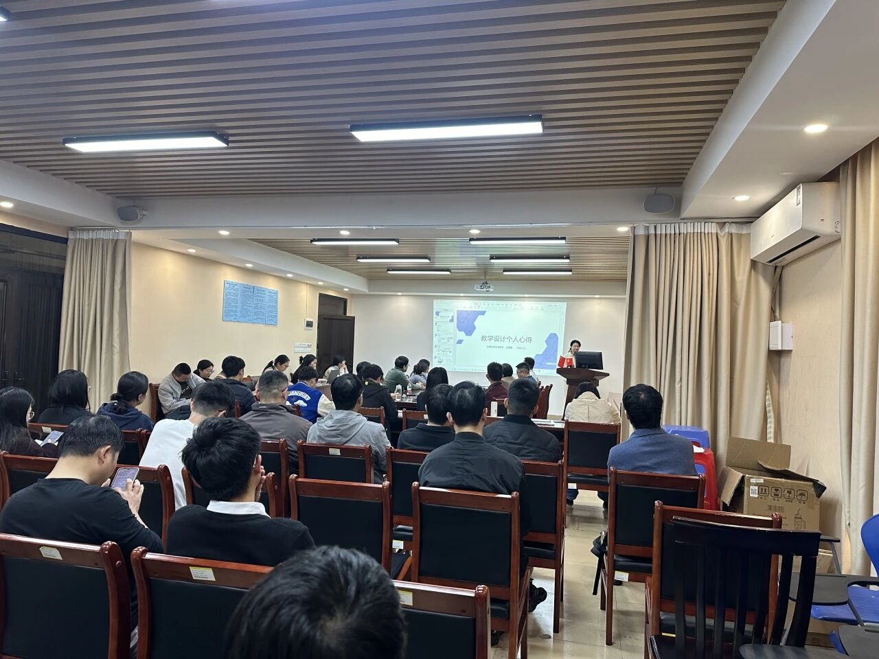督导原峰山结合上学期听课情况,从教学规范与课堂细节入手进行了反馈。他强调,教师应严格遵守教学纪律,提前10分钟到场调试设备,确保教学材料准备齐全;在课堂教学中,要注重教学互动与学情关注,以饱满的精神状态和较强的课堂掌控力,提升教学效果。