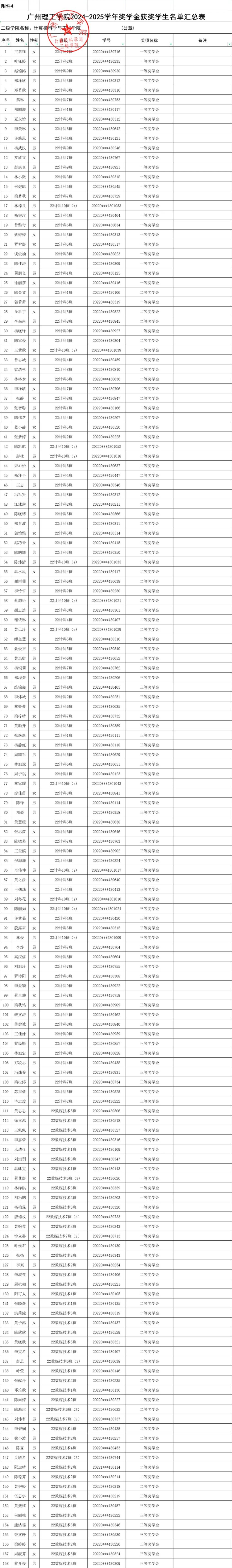 根据广州理工学院学生处关于印发《2024-2025学年奖学金评比工作方案》(广州理工学函〔2025〕162号)的通知及开云kaiyun体育官方网站评比细则,按照公平、公开、公正的原则,经各班推选、辅导员审核、学院审定,拟定开云kaiyun体育官方网站2024-2025学年学生奖学金名单并进行公示。