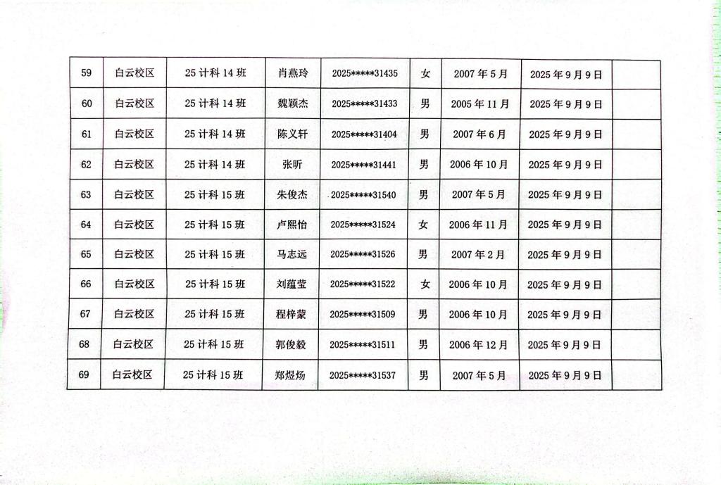计算机科学与工程学院2025年秋季学期入党申请人公示