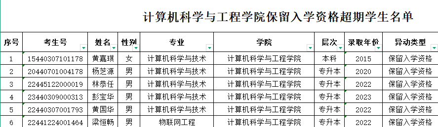 为进一步规范我校学生学籍管理,维护学校教育管理秩序的正常运行,保障学生的合法权益,根据《普通高等学校学生管理规定》(教育部令第41号)及《广州理工学院学籍管理办法》(广州理工〔2025〕55 号)规定等相关文件要求,经学院党政联席会议讨论研究,决定对超期休学、保留入学资格的学生开展学籍清理工作。现将有关事项通知如下: