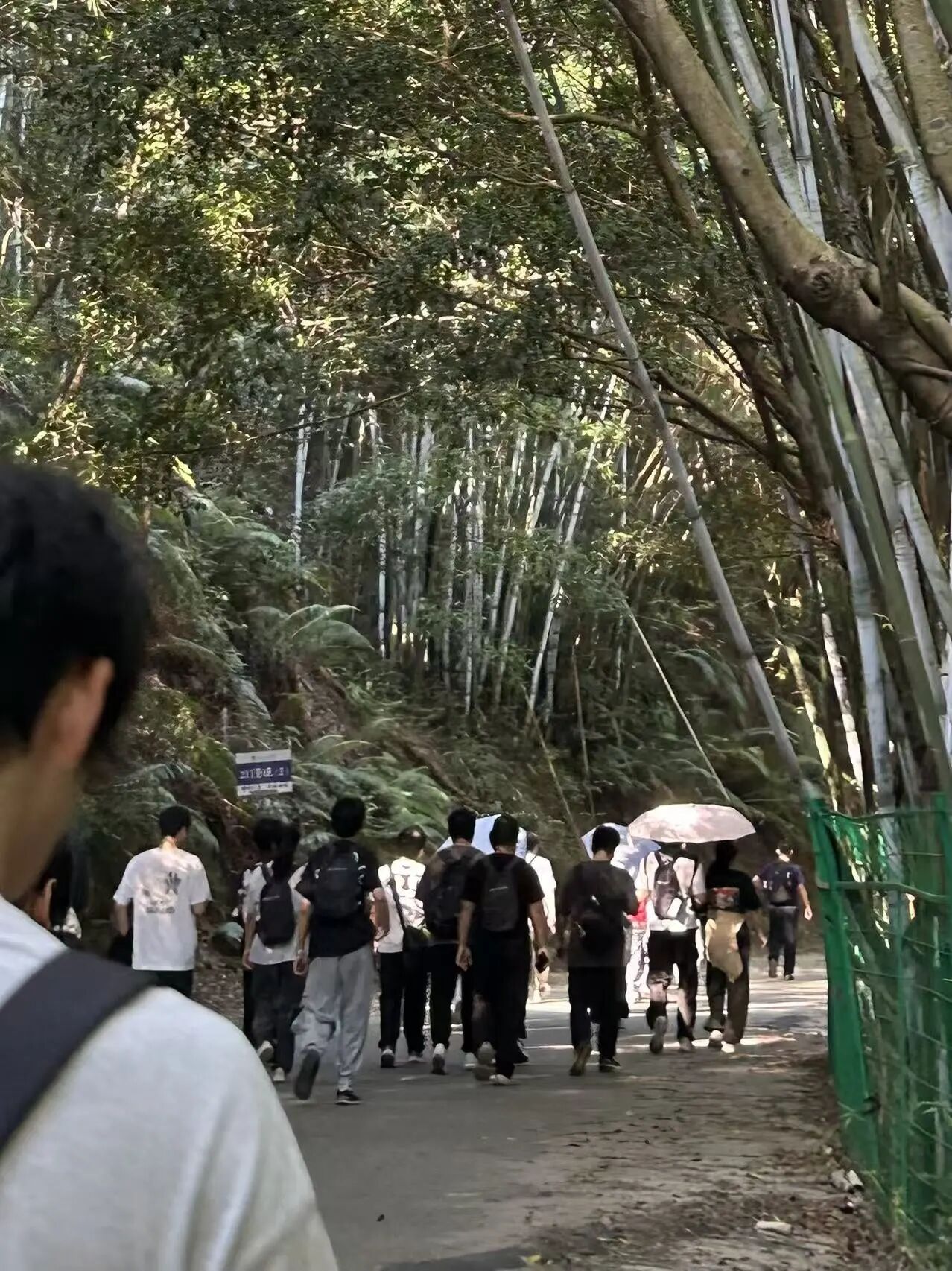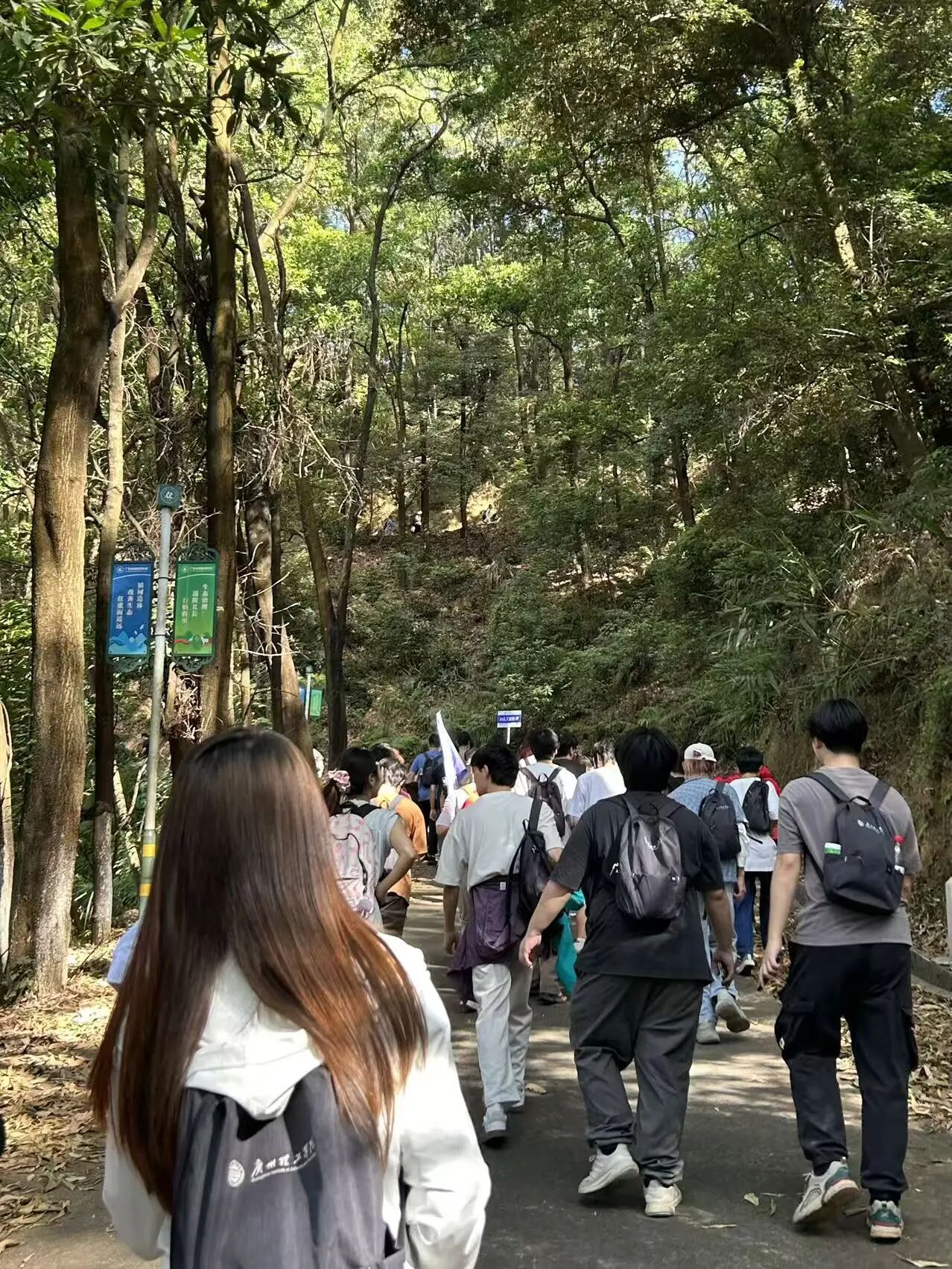 深秋的帽峰山,层林尽染,清风拂面。同学们沿着蜿蜒山道稳步前行,穿梭于斑斓林海之间,聆听山鸟和鸣,尽览秋日胜景。一路上大家相互鼓励、笑语相伴,历经近三小时的持续攀登,陆续成功登顶。汗水凝结为笑容,坚持终见群山之巅,青春的身影与壮阔风景交相辉映,成为这个秋天最动人的记忆。