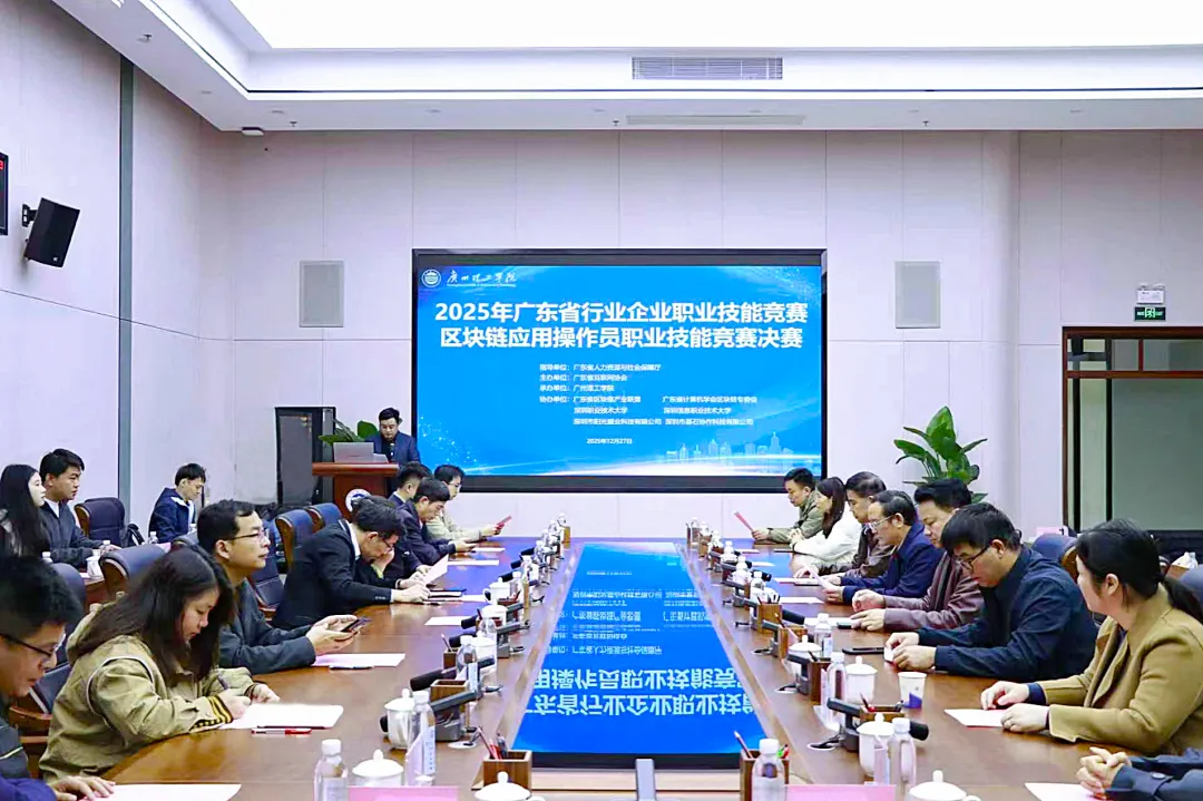 12月27日,2025年广东省行业企业职业技能竞赛-区块链应用操作员职业技能竞赛在广州理工学院举行。广州理工学院副校长张日新,广东省互联网协会秘书长徐强、广州市大湾区智能科技人才联合会副理事长李中华、广东省计算机学会区块链专业委员会副主任委员兼秘书长黄建新、联想教育集团产教融合负责人吴洋、广东电信规划设计院正高级工程师庞志鹏等出席了开幕式。全省各单位参赛队伍、行业专家及院校代表七十多人,计算机科学与工程学院全体领导班子共同见证赛事启动。开云kaiyun体育官方网站、人工智能与数字经济产业学院副院长陈易平主持开幕式。