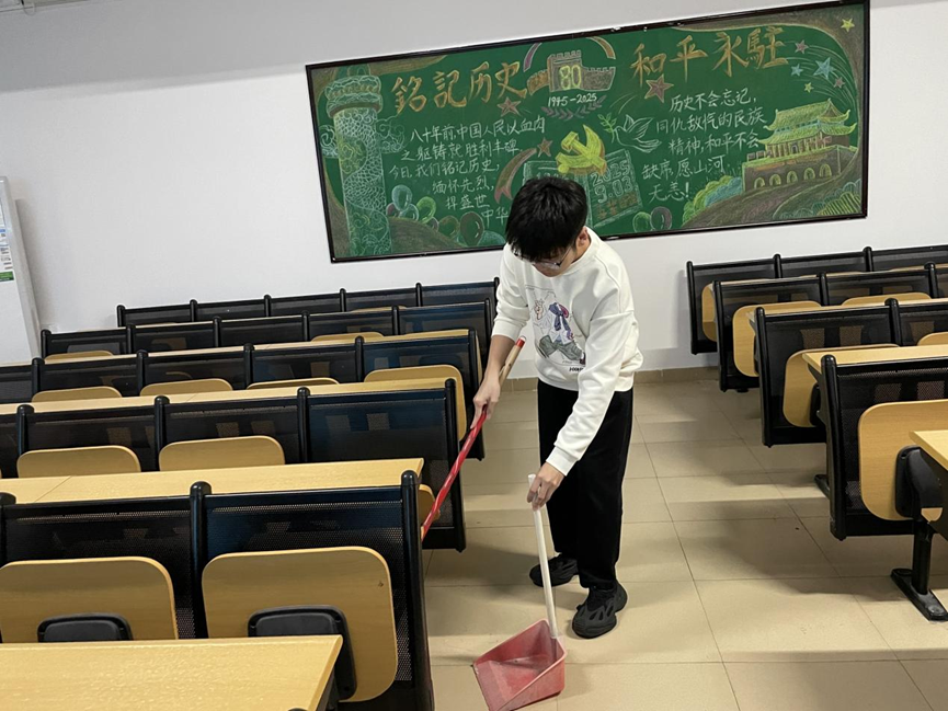 活动前期,学院提前部署、合理分工,明确报名学生负责区域,准备好扫帚、拖把、抹布等清洁工具,确保打扫工作有序高效推进。下午2时许,参与活动的学生迅速集结,并投入到卫生打扫工作中。
