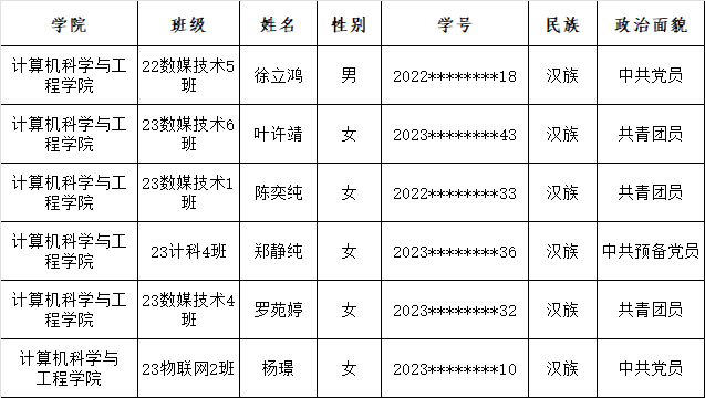 根据《广州理工学院办公室关于开展2025年“大学生年度人物”推选展示活动的通知》文件精神,本着公平、公开、公正的原则,经个人自荐、民主评议、学院评审等环节,评选出2025年计算机科学与工程学院“大学生年度人物”,现将名单予以公示。