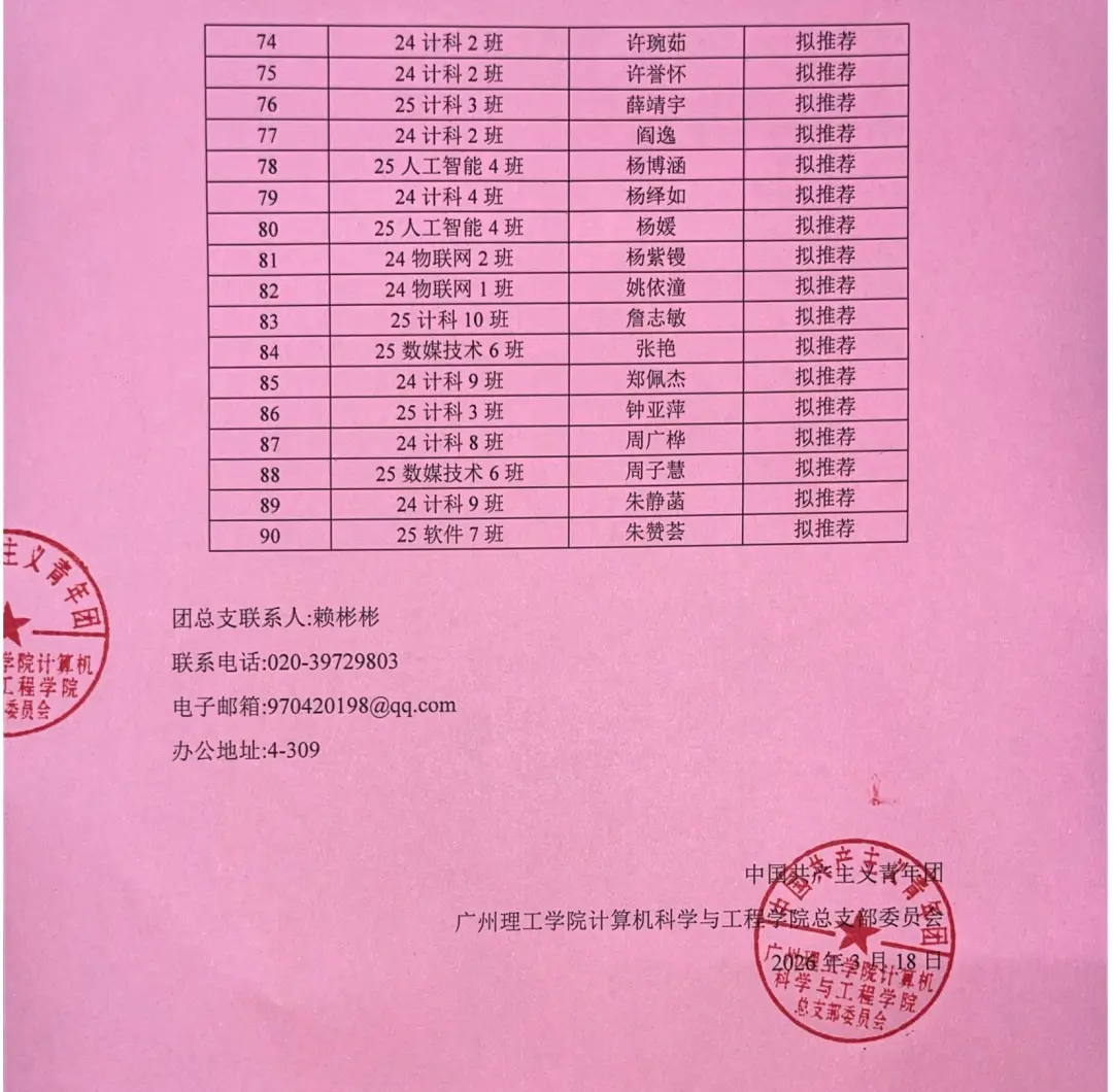 经开云kaiyun体育官方网站团支部、团总支面谈与研究,现拟将蔡桂馥、曾俊成等同学推荐为入团积极分子,现予以公示。公示时间:2026年3月18日-3月20 日,共计3个工作日。如有异议,请在公示期,通过电话、邮件、书面形式或约谈反映,反映情况属实并署反映人真实姓名。